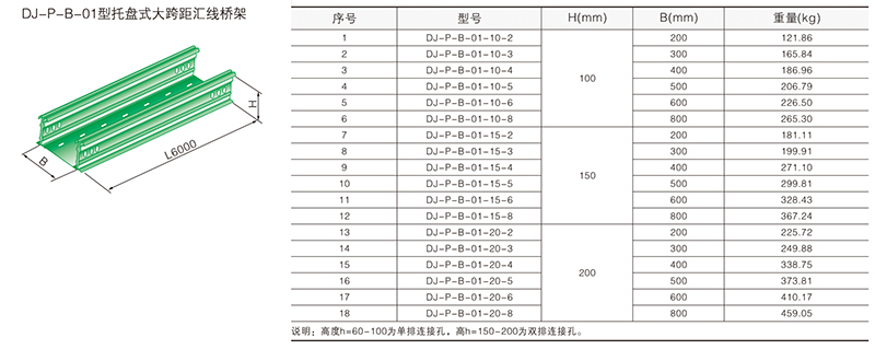 大跨距橋架分梯級(jí)式、槽式、托盤式三種型號(hào)。A型、B型二種類別,支撐間距為6m,當(dāng)跨距大于6m時(shí)可接受特殊訂貨。